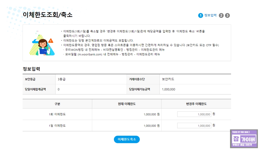 우리은행 이체한도 변경 한도 증액 및 주의사항
