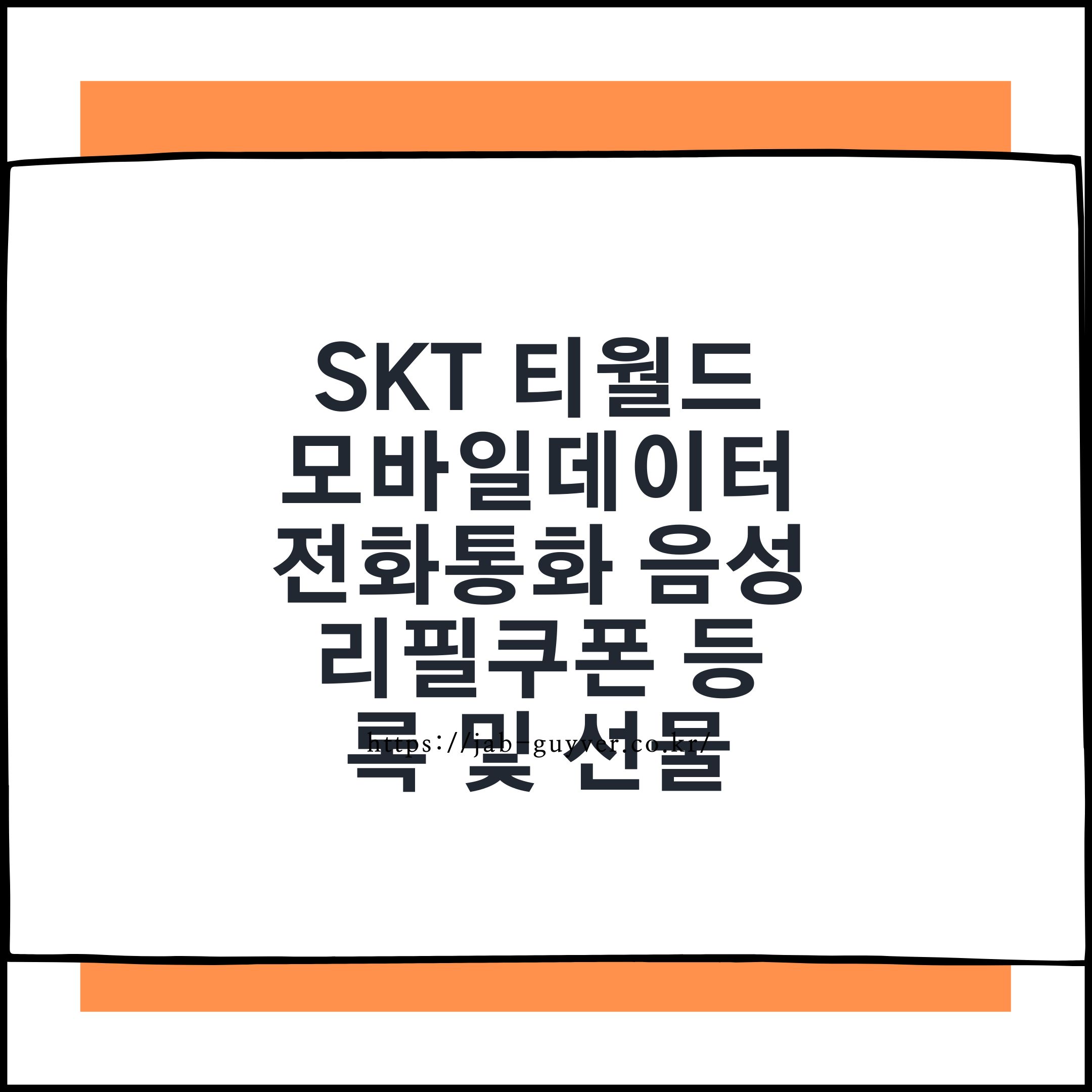 SKT 티월드 모바일데이터 및 전화통화 음성 리필쿠폰 등록 및 선물