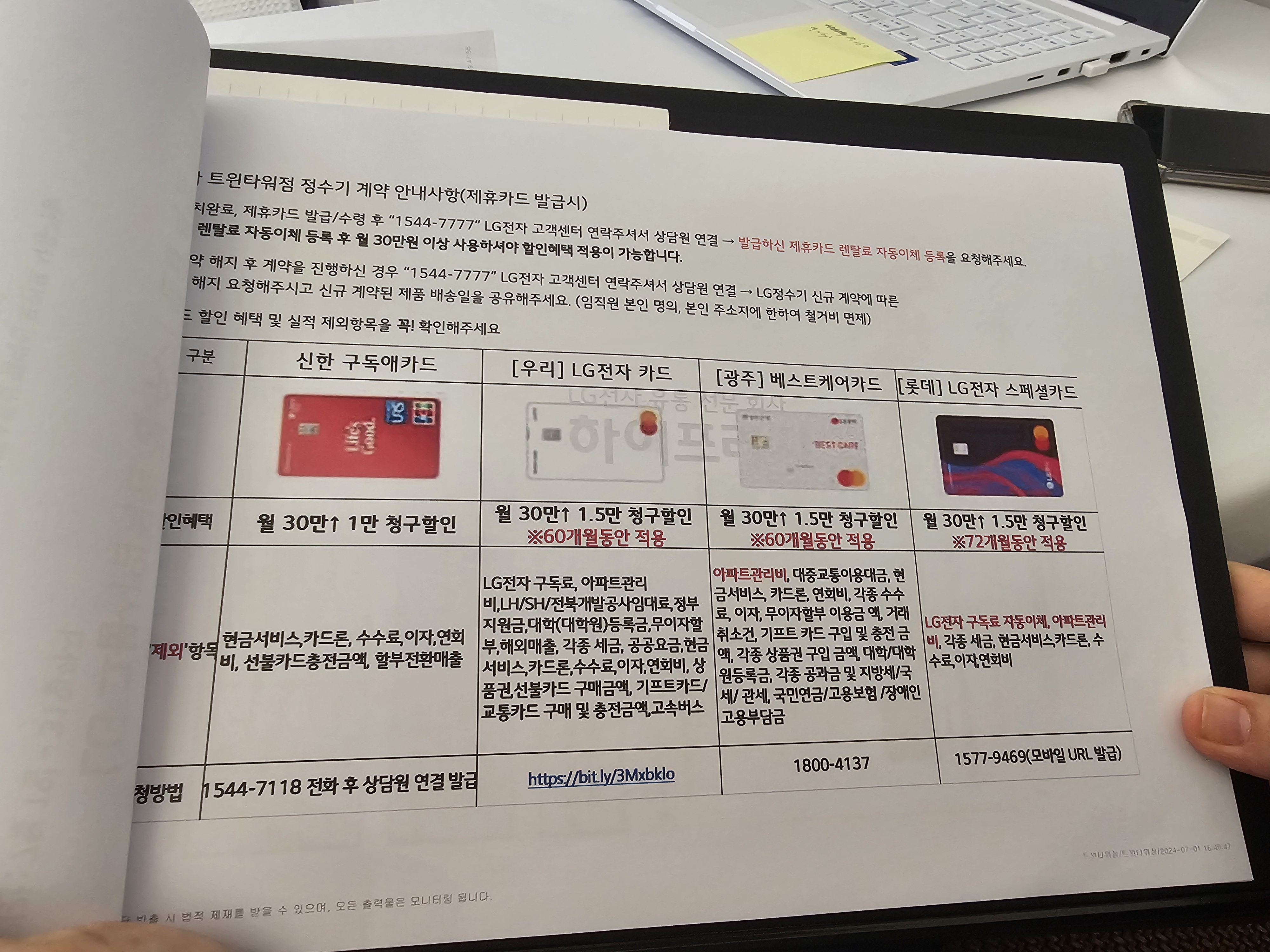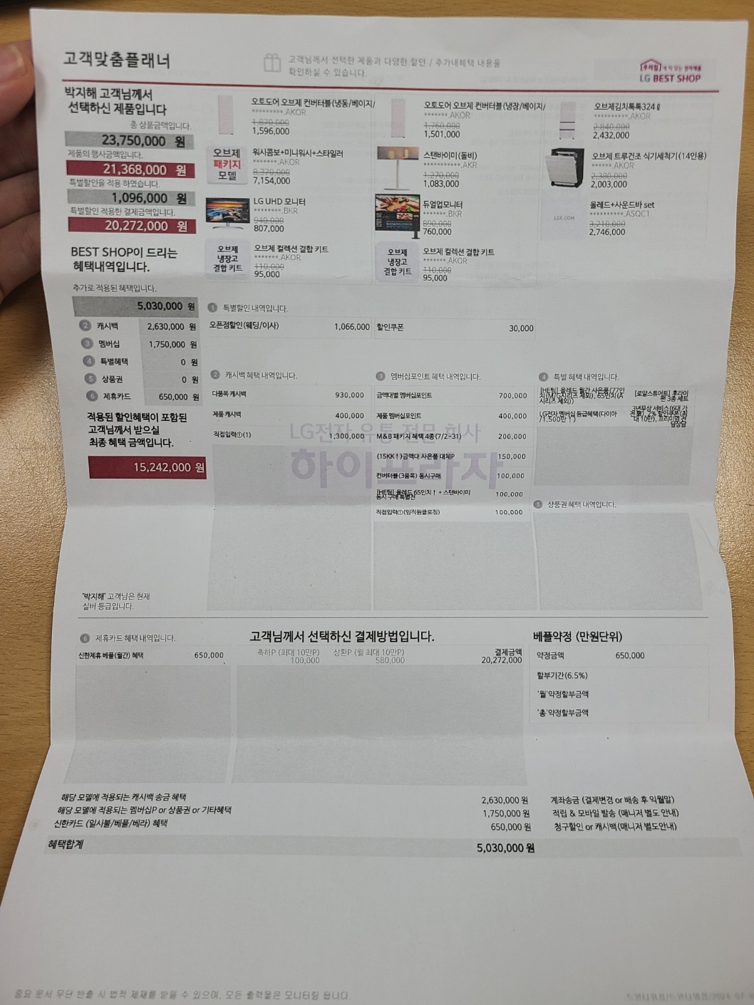 그래서 최종적으로 찾은곳이 여의나루에 있는 LG전자베스트샵 트윈타워점인데 여긴 7월 한달간만 진행되고 임직원가로 구입할 수 있다고 하면서 견적을 미리 받아와라 라고 하더라구요