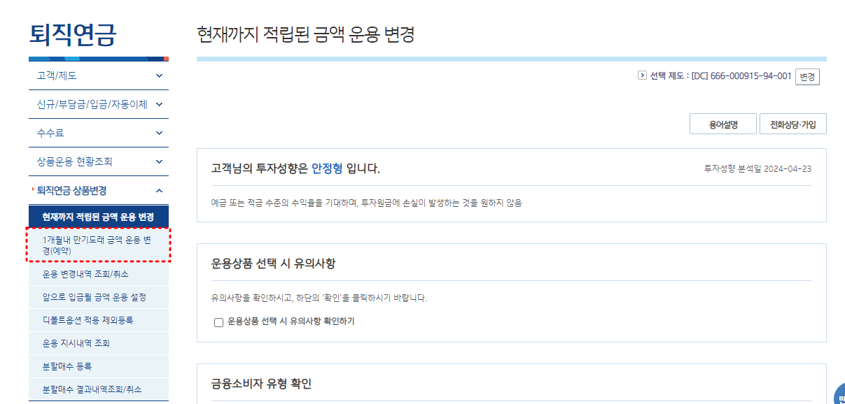 원리금 보장상품의 경우, 변경하는 시점에 따라 중도해지 사유로 인해 약정된 금리를 받지 못할 수 있습니다.