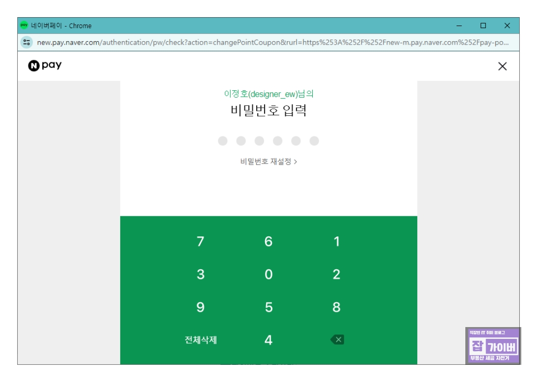 - 네이버페이 앱 > 내 정보 > 결제 비밀번호 변경