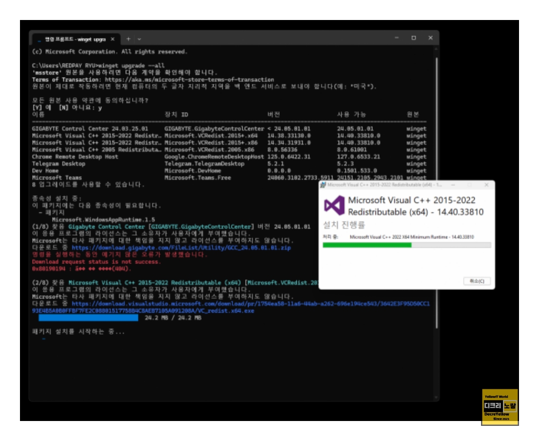 winget upgrade --all 명령어 - 윈도우 앱 자동업데이트