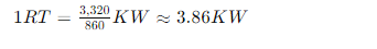 위 표에서, 1RT는 약 3.86 KW(또는 정확히 3.86 KW)에 해당합니다.