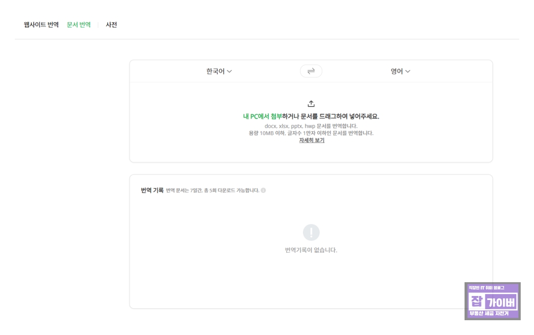 파파고 웹사이트는 브라우저 상관 없이 이미지 파일을 번역할 수 있습니다. 다만, 모바일에서만 사용 가능했지만 웹사이트 및 문서번역등을 통해 원하는 docx, xlsx, pptx, hpw 문서등을 1만글자 이하 및 10mb 이하 번역이 가능합니다.