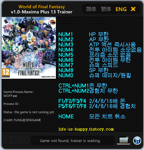 월드오브 파이널판타지 트레이너가 필요하다면 위 파일을 다운로드 후 압축을 해제합니다.