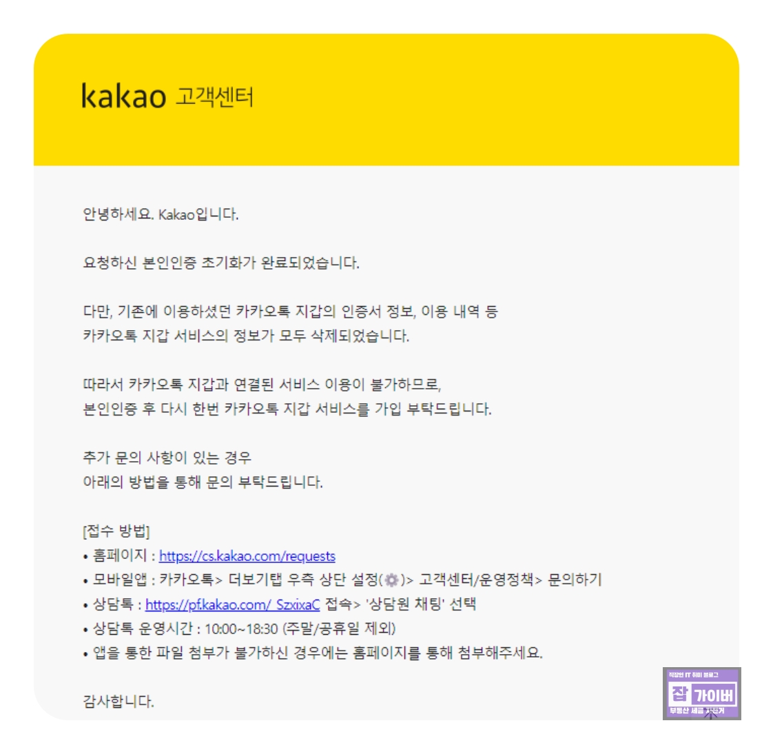 카카오톡 본인인증 초기화 가족명의 변경 계정탈퇴 필요서류
