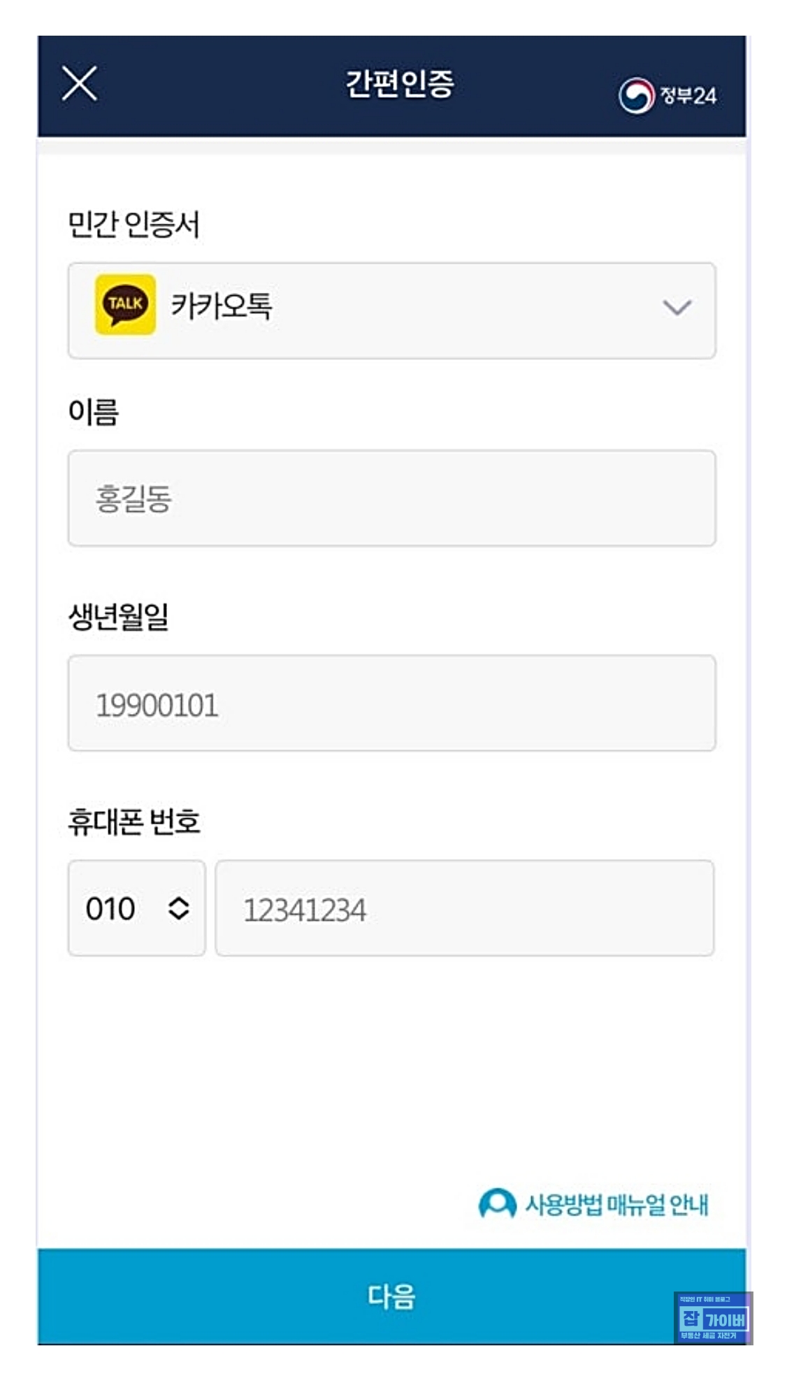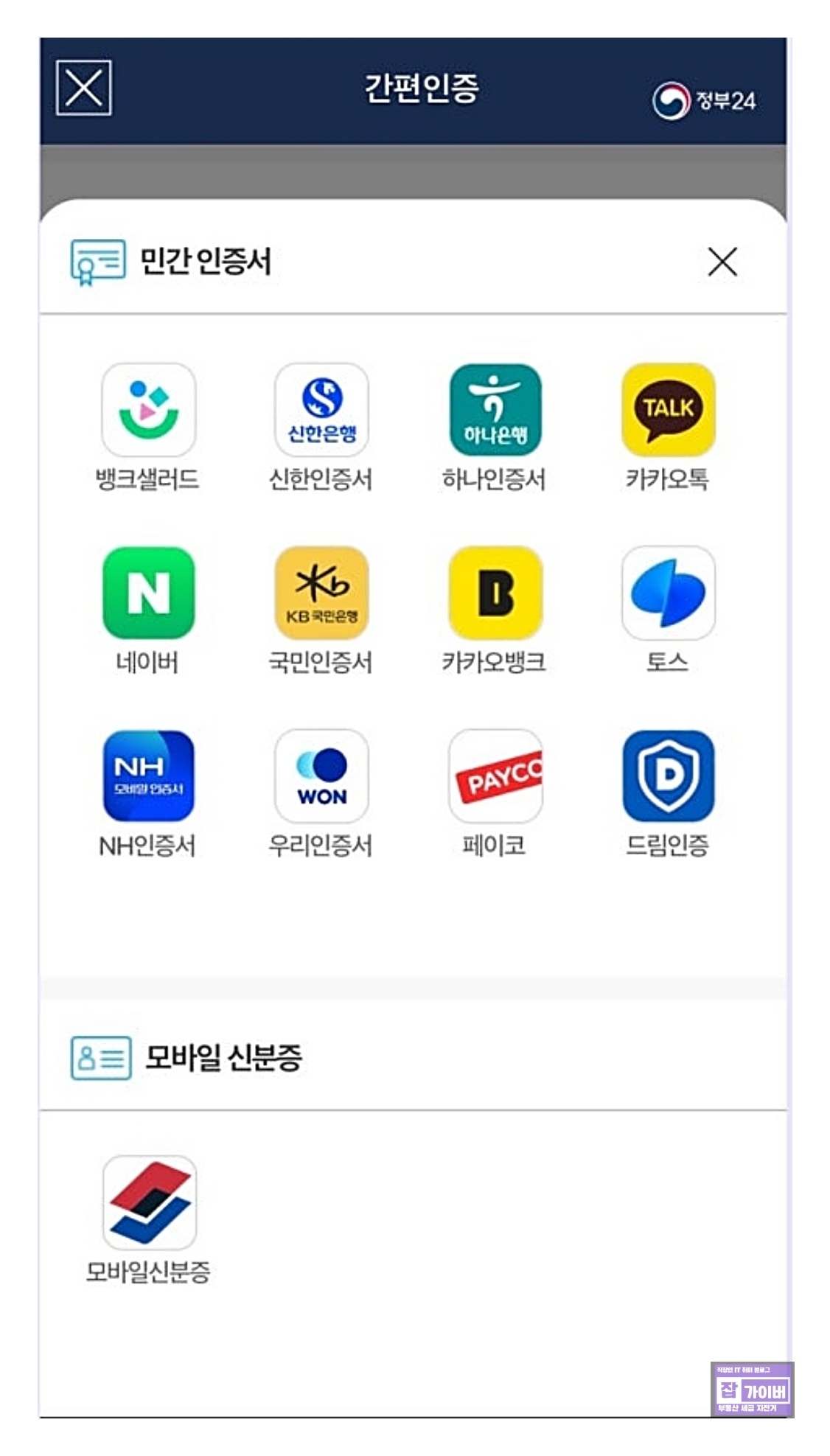 정부24 앱에서는 다양한 로그인 방법을 지원하지만, '간편 인증'을 사용하는 것이 가장 빠르고 간편합니다.