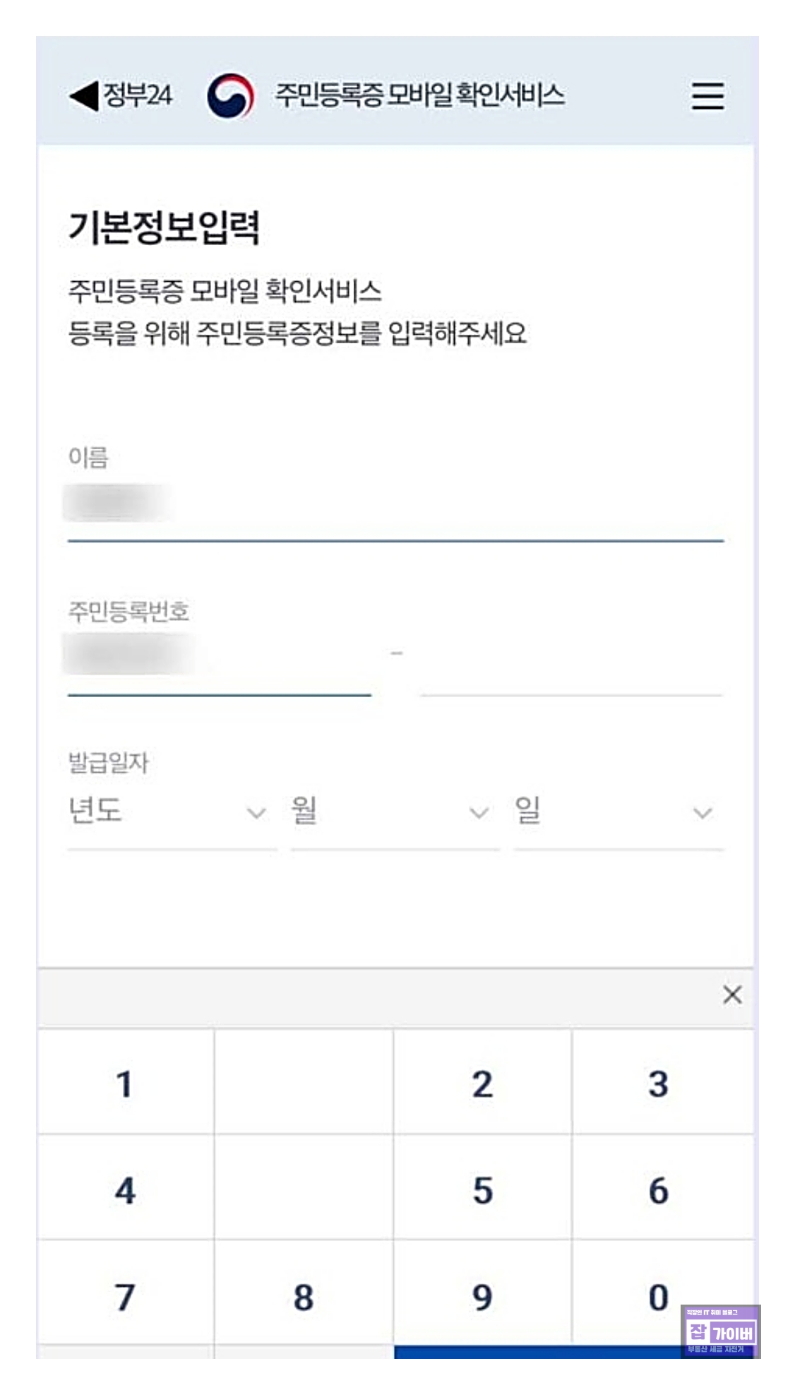 추가로 주민등록번호와 기타 필요한 정보를 입력하고, 인증을 완료하면 발급일자 및 관련 정보를 확인할 수 있습니다.