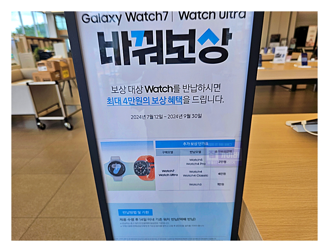 우선 갤럭시워치는 현재 기존 워치를 반납 시 최대 4만원 보상혜택으로 진행하고 있으니 보상판매 참고하세요