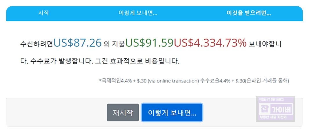 페이팔 보류중 송금 및 지급방법 수수료 계산방법