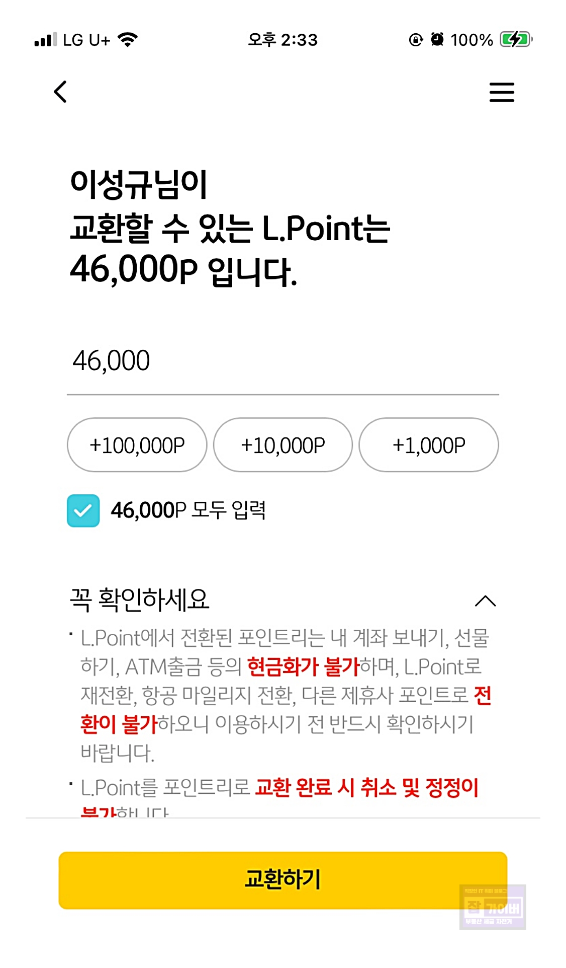 - 전환 가능 금액: 최소 1,000원이며, 단위는 1,000원입니다.