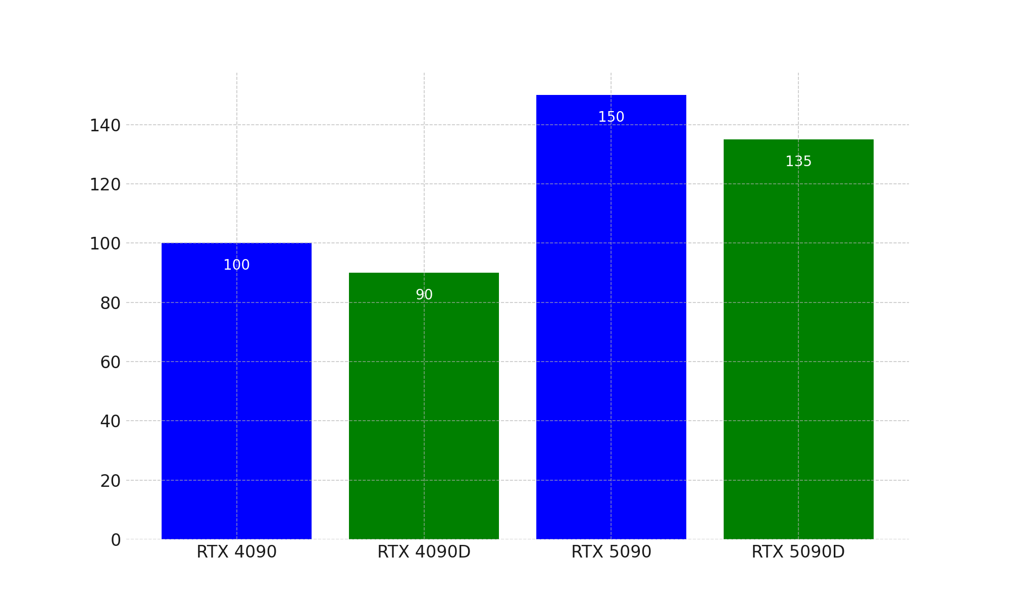 아래 그래프는 RTX 4090, RTX 4090D, RTX 5090, RTX 5090D의 성능을 비교한 것입니다.