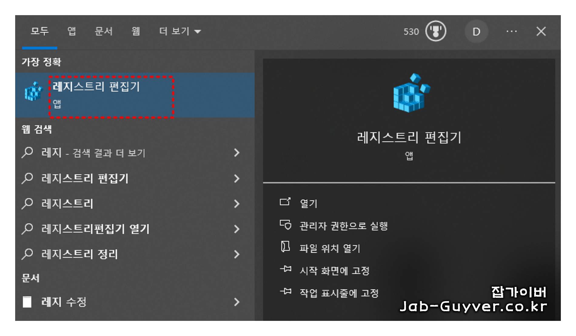 레지스트리 편집기를 열고 아래경로로 이동합니다.