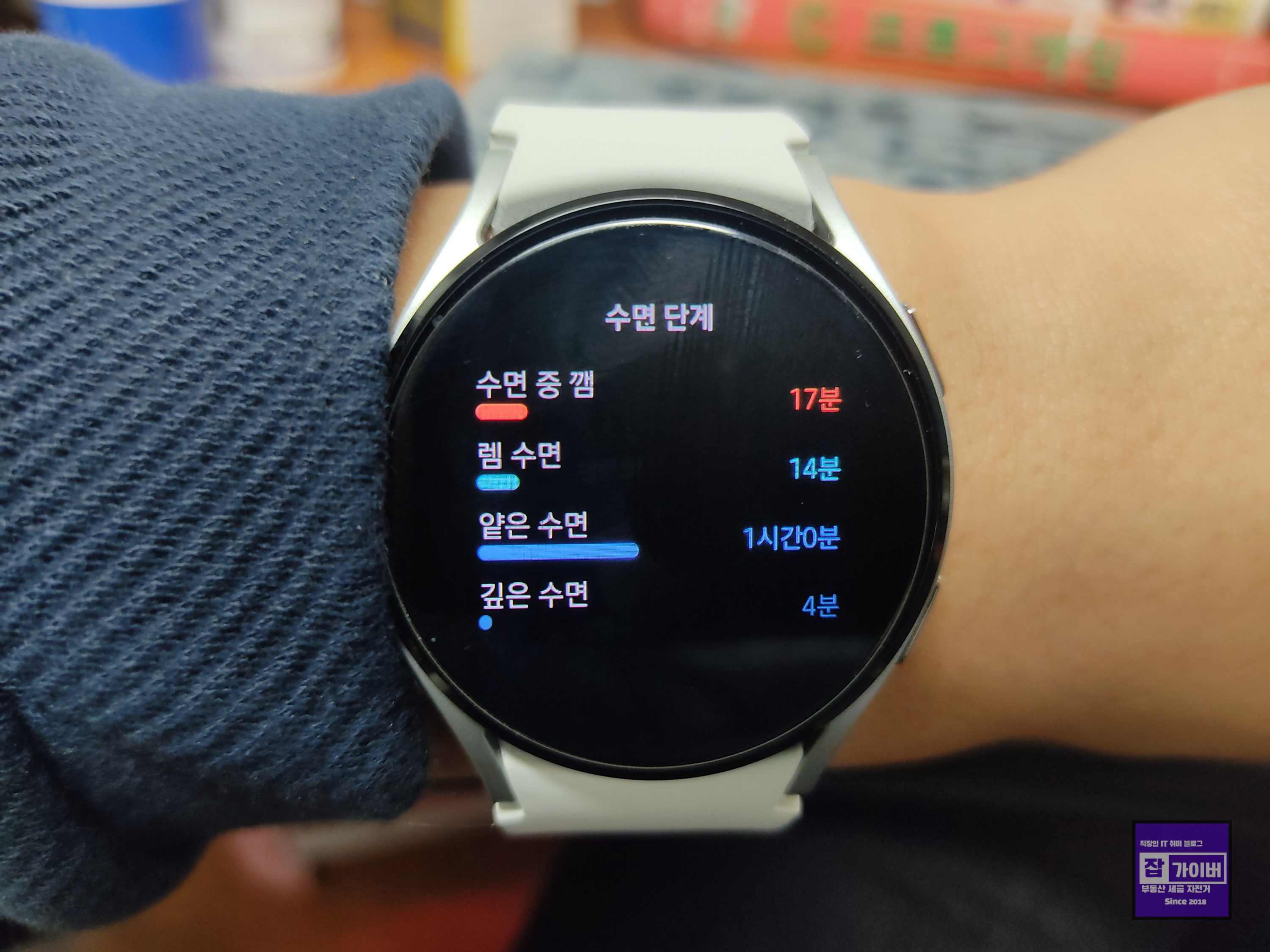 2. 워치를 착용한 상태로 수면을 취하면, 수면 단계가 자동으로 기록됩니다.