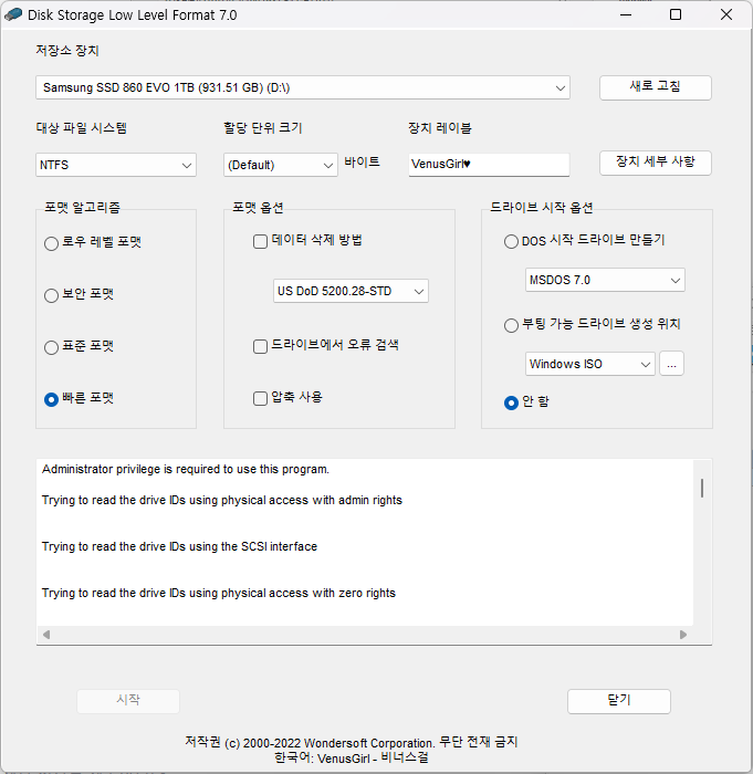 정밀포맷 "로우레벨 Low Level Format" 다운로드 및 삭제