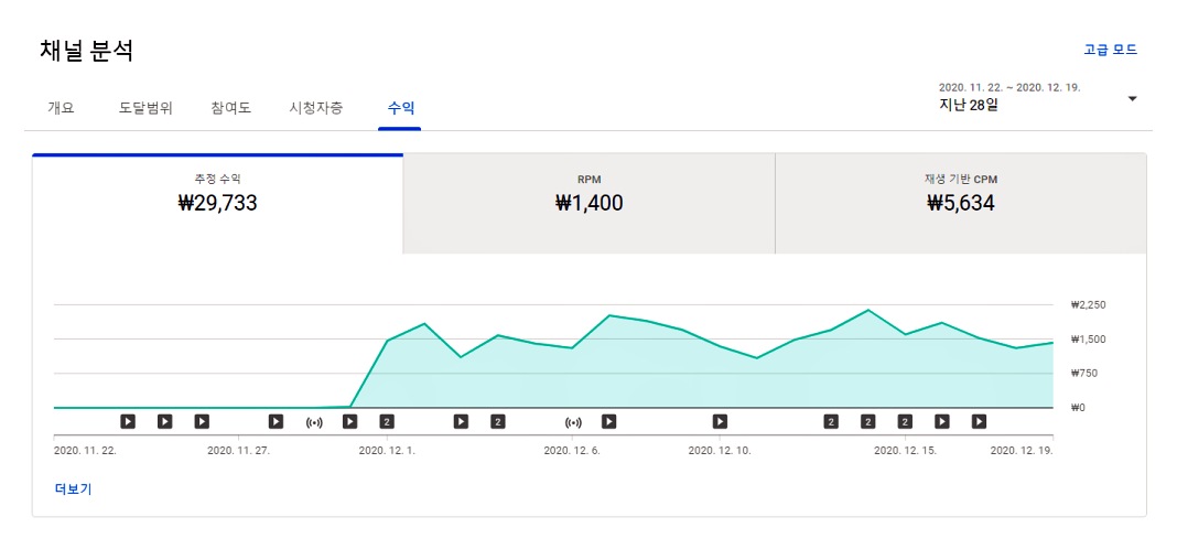 ※ CPM은 광고 소재, 시청자의 위치 및 연령, 시즌성 등에 따라 실시간으로 달라질 수 있음