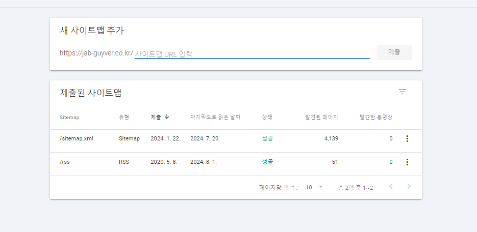 - 그리고 사이트맵이 중복으로 등록되어 있는경우 하나만 등록하느것이 좋습니다.