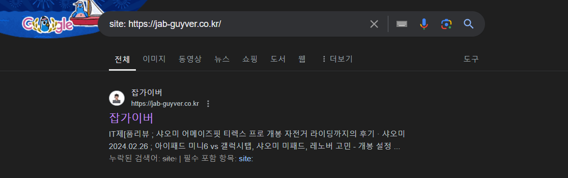 - 블로그 또는 사이트 URL을 검색창에 입력하여 색인이 생성되지 않았는지 확인합니다.