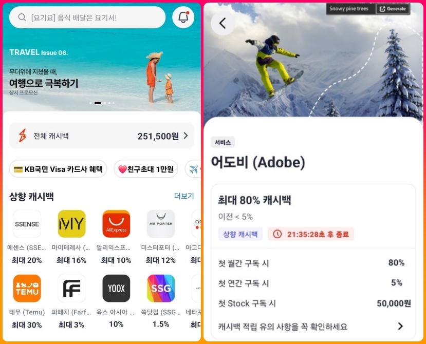 만약 어도비 구독을 고려 중이라면 샵백을 활용하여 경제적인 구매를 추천드립니다.