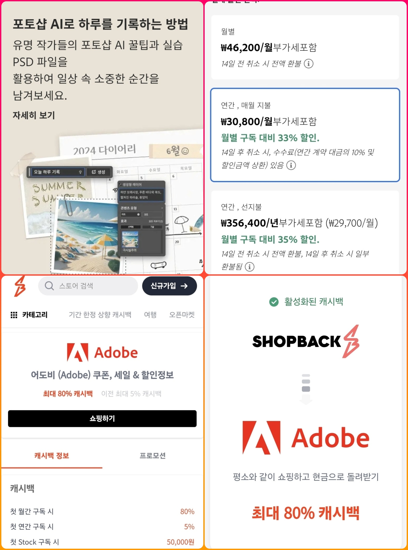 어도비 구독 시 샵백 활용 방법