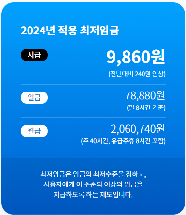 • 월 최저임금: 10,030원 × 209시간 = 2,096,270원