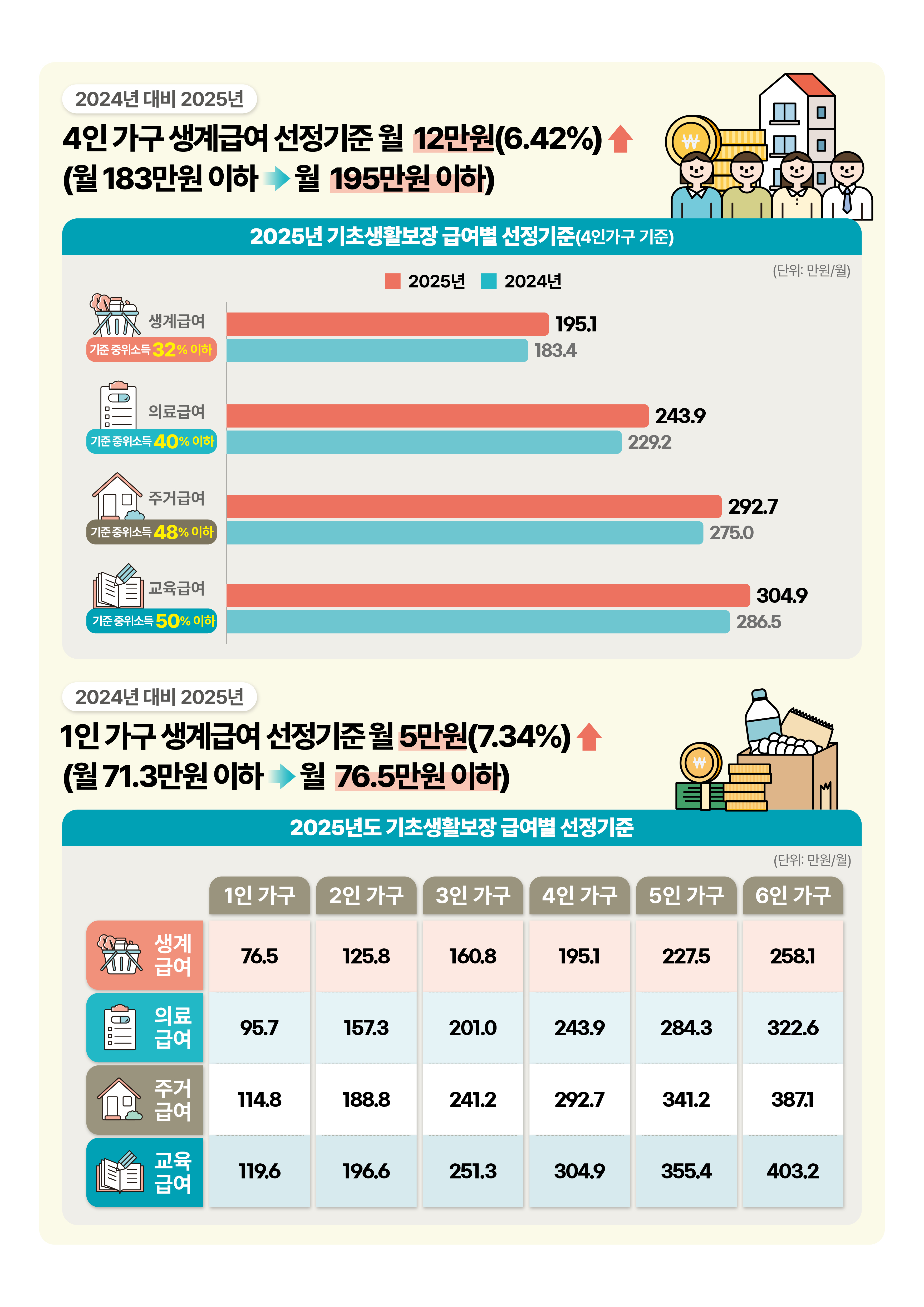 | 가구원수 | 2024년 | 2025년 |
