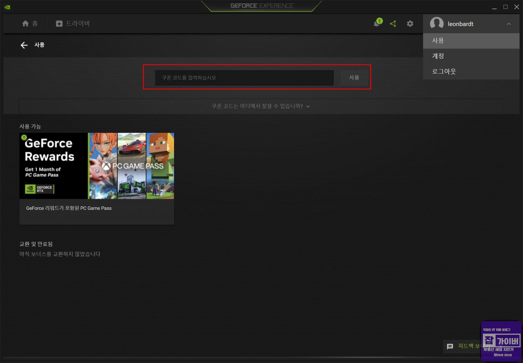Geforce Experience 쿠폰등록 후 스팀 ㅅ길행