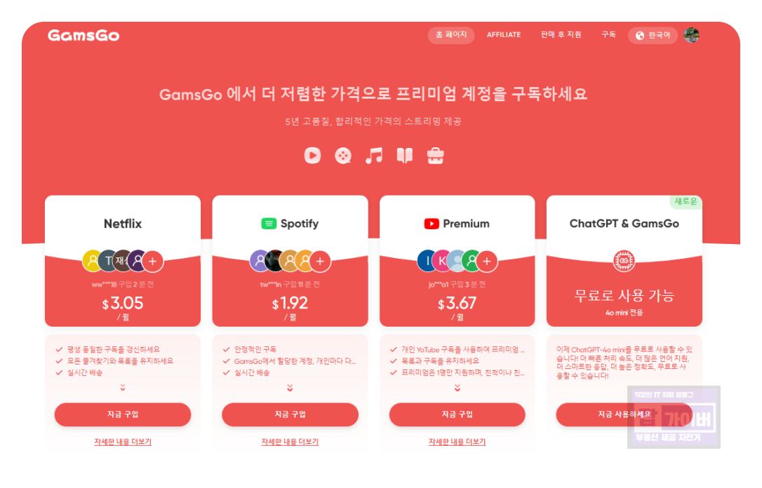 디즈니 플러스, 넷플릭스, 유튜브 프리미엄 할인 겜스고 사기걱정 추천인오늘은 디즈니 플러스, 넷플릭스, 유튜브 프리미엄 등을 저렴하게 구독할 수 있는 플랫폼 겜스고(GamsGo)에 대해 알