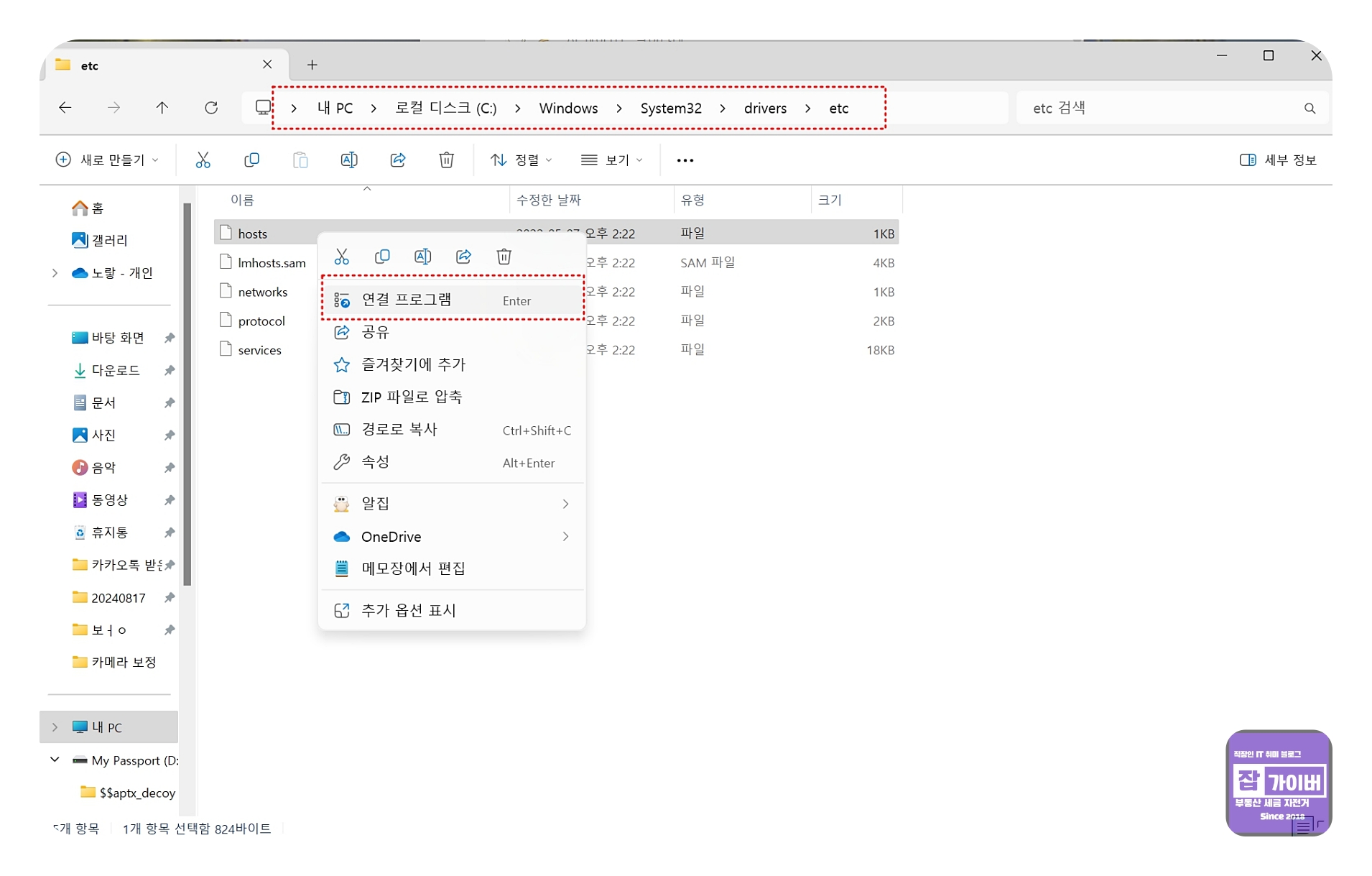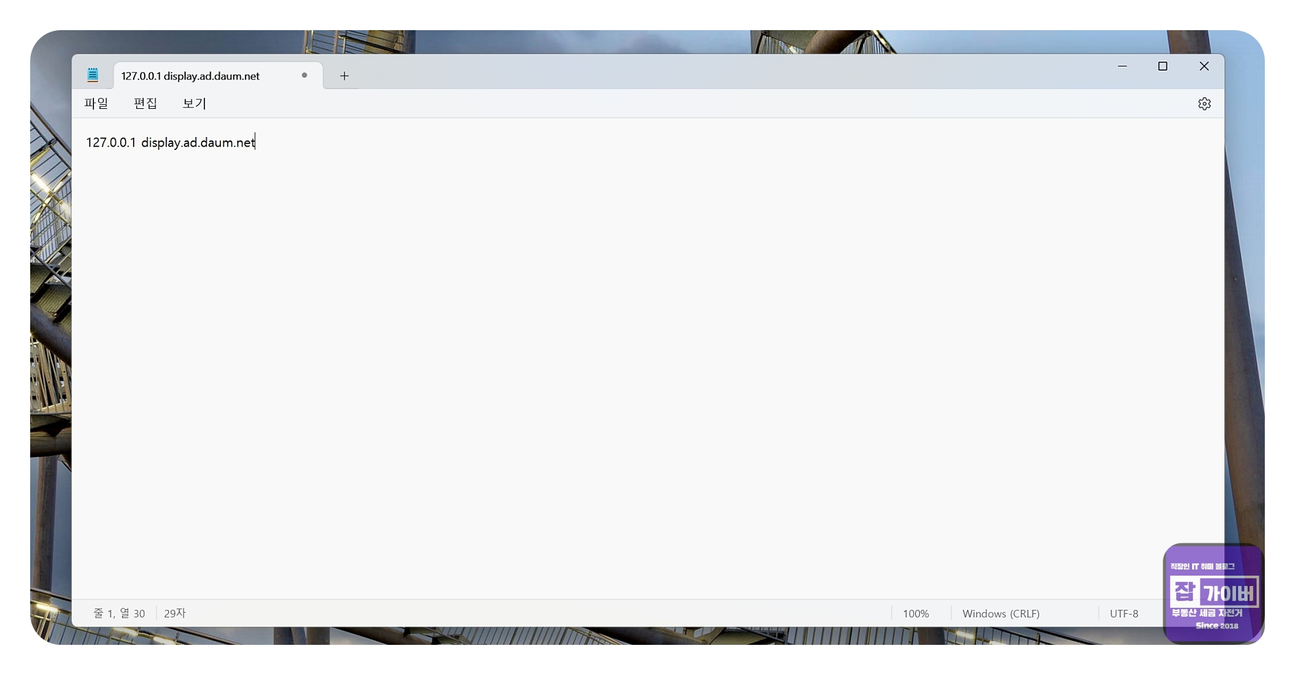 이 파일을 수정하면 특정 웹사이트나 서버로의 연결을 차단할 수 있어, 카카오톡에서 광고를 불러오는 서버의 접근을 막을 수 있습니다.