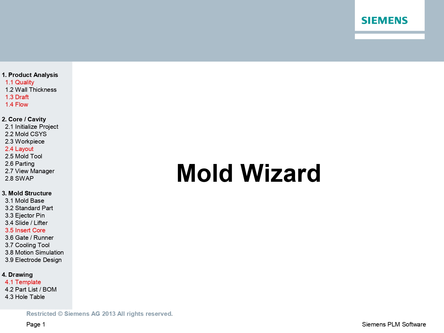 몰드 위자드는 Siemens NX의 금형 설계를 위한 전문 모듈로, 복잡한 금형 설계 프로세스를 자동화하고 최적화하는 데 중점을 둡니다.