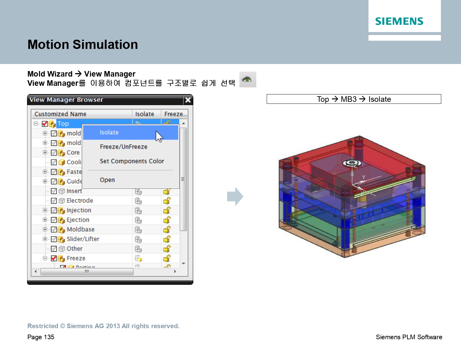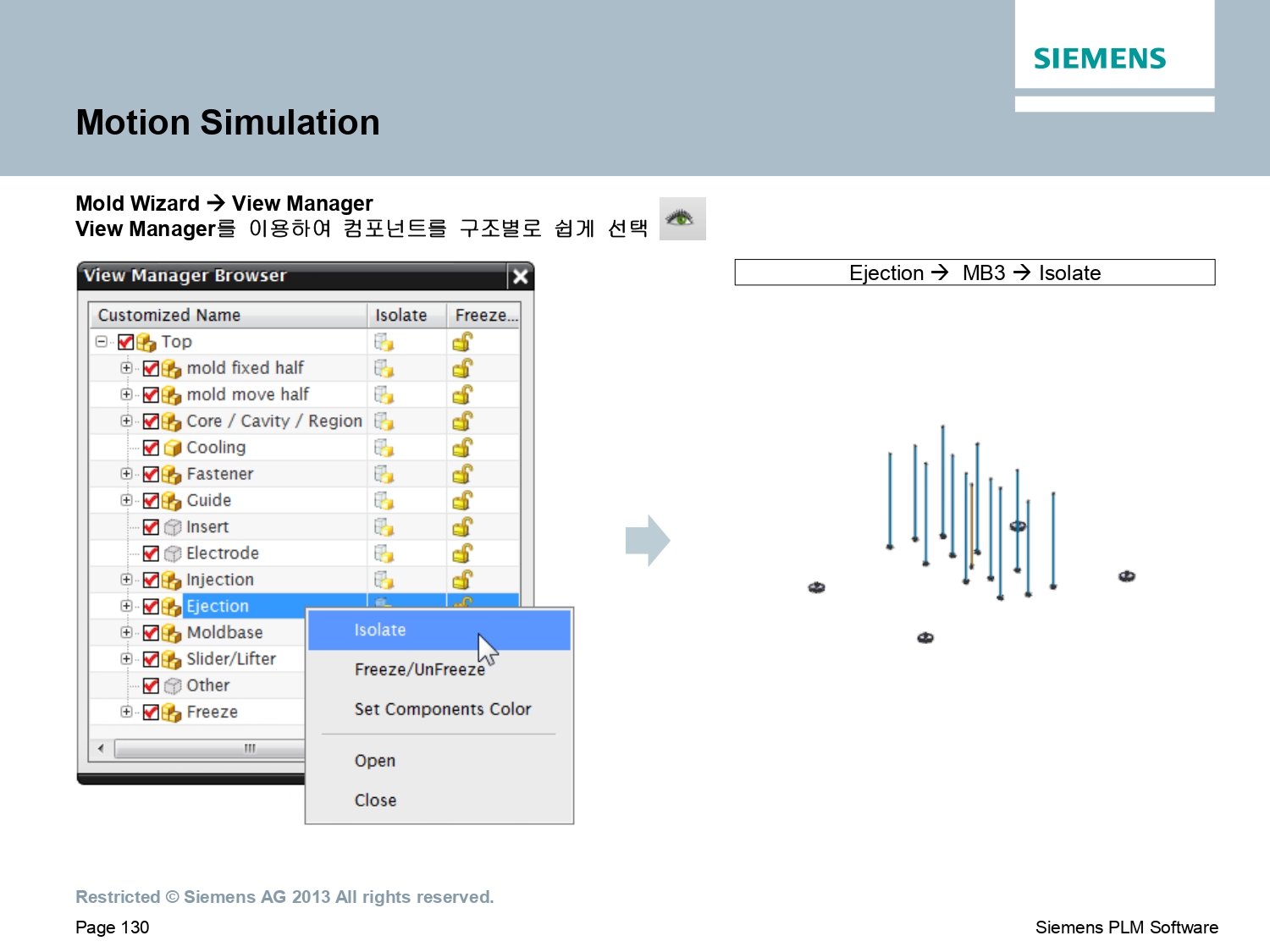 몰드 위자드는 표준화된 부품 라이브러리를 제공하여, 금형 설계에 필요한 다양한 부품을 신속하게 배치할 수 있습니다. 이러한 부품들은 규격에 맞게 자동으로 조정되며, 사용자 정의 부품도 쉽게 추가할 수 있습니다. - 고급 해석 및 검증 기능