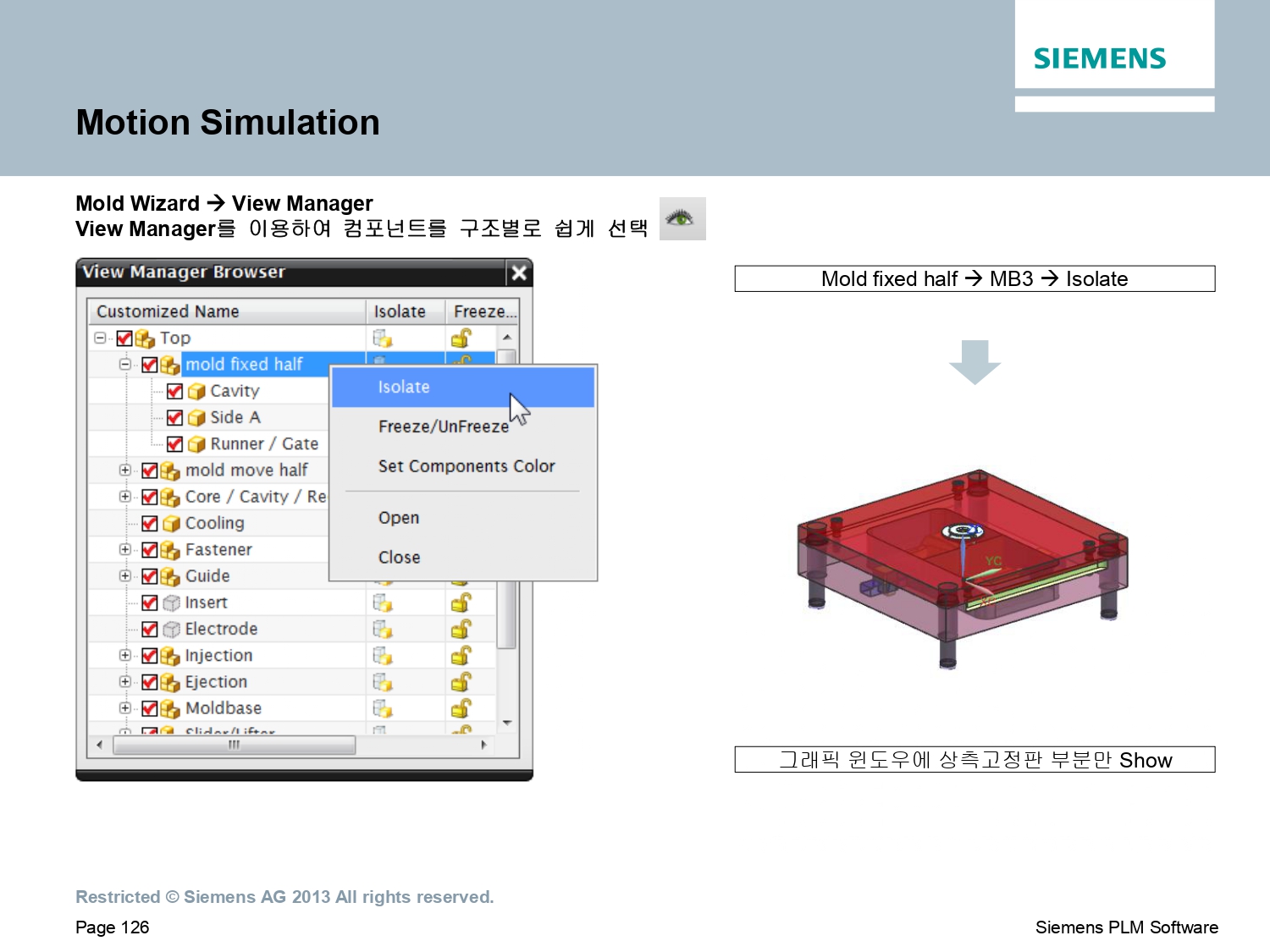 - 몰드 해석: 몰드 위자드는 주입 과정의 시뮬레이션을 포함한 다양한 해석 도구를 제공합니다. 이러한 해석을 통해 설계의 오류를 미리 확인하고 수정할 수 있습니다.