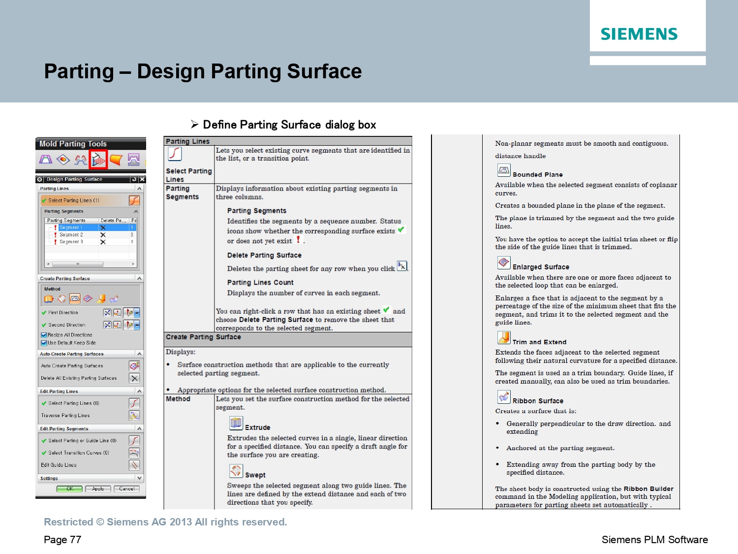 - 복잡한 지오메트리를 가진 부품의 경우, 수동으로 파팅 라인을 조정하여 최적의 분할을 도출합니다.
