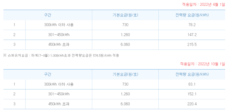 - 3단계: 451kWh 이상 (기본요금 7,300원, kWh당 307.3원)