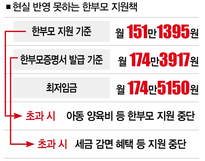 한부모 가정이 실질적인 도움을 받을 수 있도록, 정부는 소득 인정액 기준을 현실적으로 조정하고, 재산 기준을 완화해야 합니다.