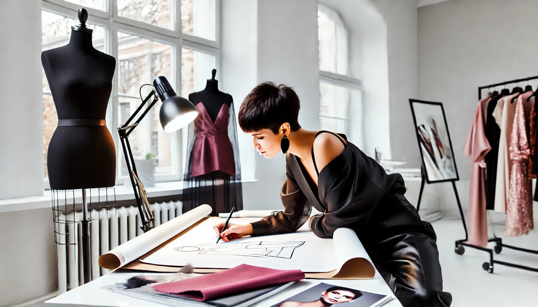 • 스타일화 작업: "모던 클래식" 주제를 반영하여 창의적이면서도 고전적인 요소를 현대적으로 재해석한 드레스 디자인을 그립니다.