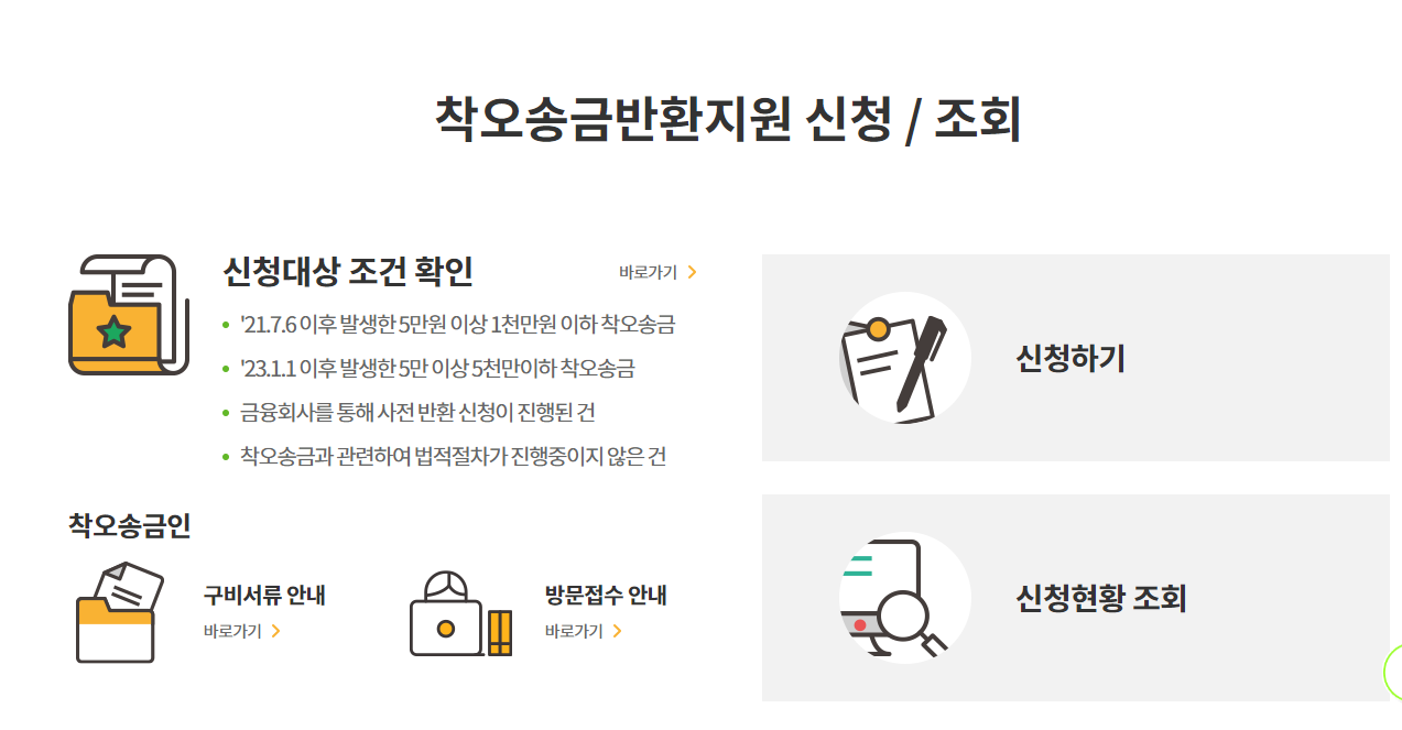 - 2023년 1월 1일 이후 발생한 착오송금: 송금 금액이 5만 원 이상 5천만 원 이하이어야 합니다.