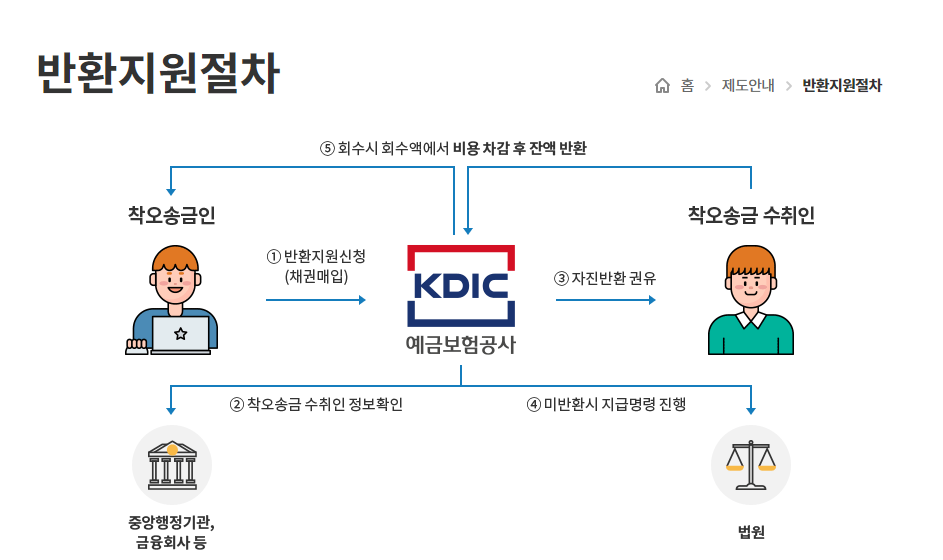 이 제도를 통해 송금인은 복잡한 법적 절차 없이도 잘못 송금된 돈을 돌려받을 수 있습니다. 예금보험공사는 수취인에게 연락하여 자진 반환을 권고하고, 만약 수취인이 반환을 거부할 경우 법원의 지급명령을 통해 강제 회수를 진행할 수 있습니다.