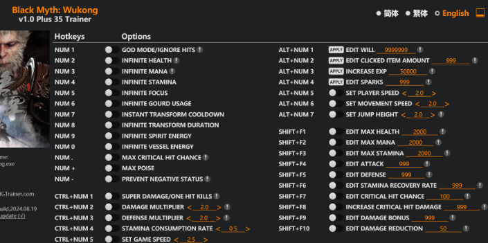 검은신화: 오공에서 트레이너를 사용하면, 어려운 보스를 쉽게 물리치거나 자원 걱정 없이 게임을 진행할 수 있습니다.