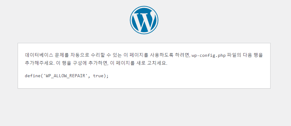 이후 https://도메인/wp-admin/maint/repair.php로 이동하여 복구를 진행하고, 복구 완료 후에는 해당 코드를 반드시 제거해야 보안상 안전합니다.