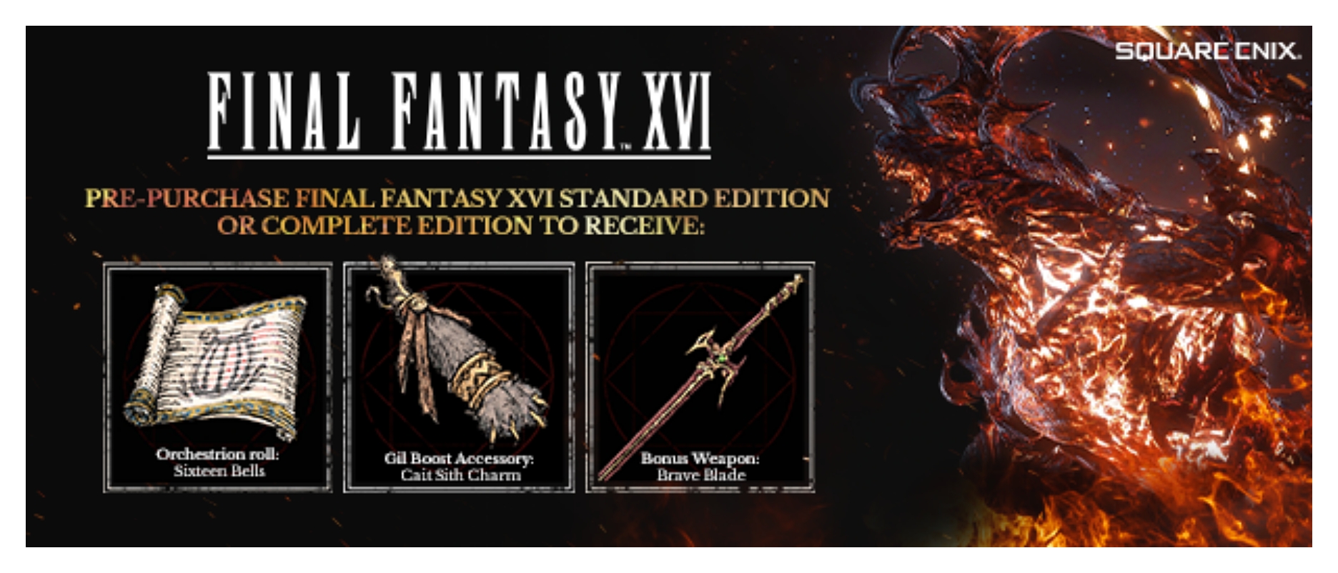8월 20일부터 10월 18일까지 게임을 예약 구매한 유저들은 '캐트시의 행운의 부적', '오케스트리온 Sixteen Bells', '브레이브 블레이드'와 같은 특별 아이템을 조기 구매 특전으로 받을 수 있습니다.