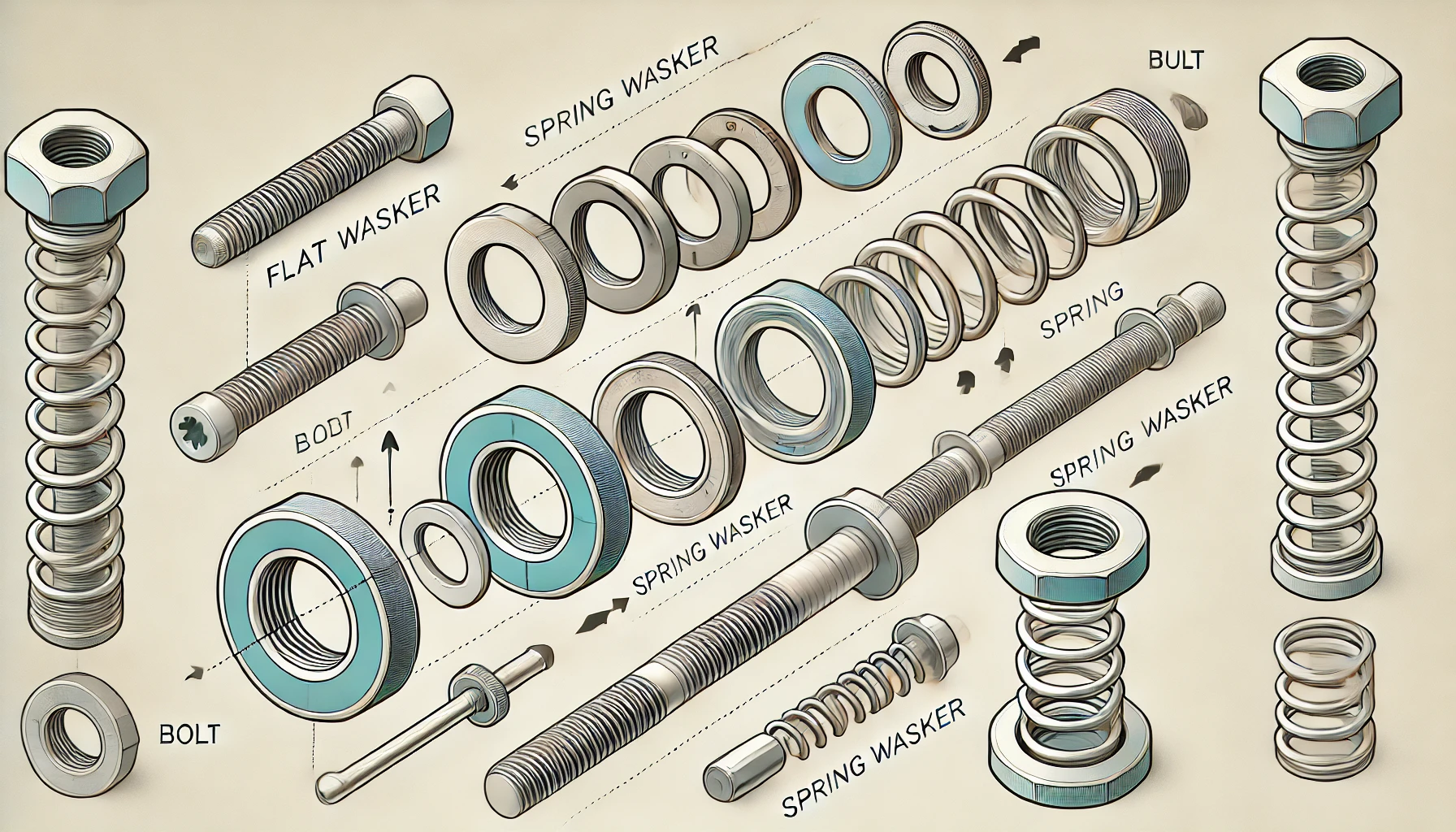 | 스프링 와셔 (Spring Washer) | 진동 방지, 체결력 유지 | 자동차 엔진, 건설 장비, 기계 설비, 항공기 부품 |