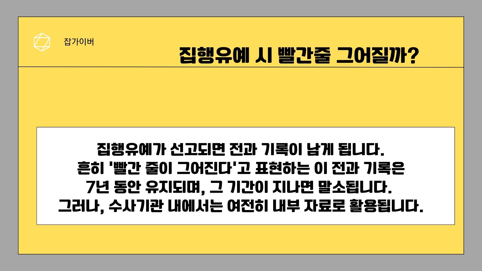 집행유예는 범죄를 저질렀을 때 형벌의 집행을 유예해 주는 제도이지만, 전과 기록이 남으며 7년 동안 유지됩니다.