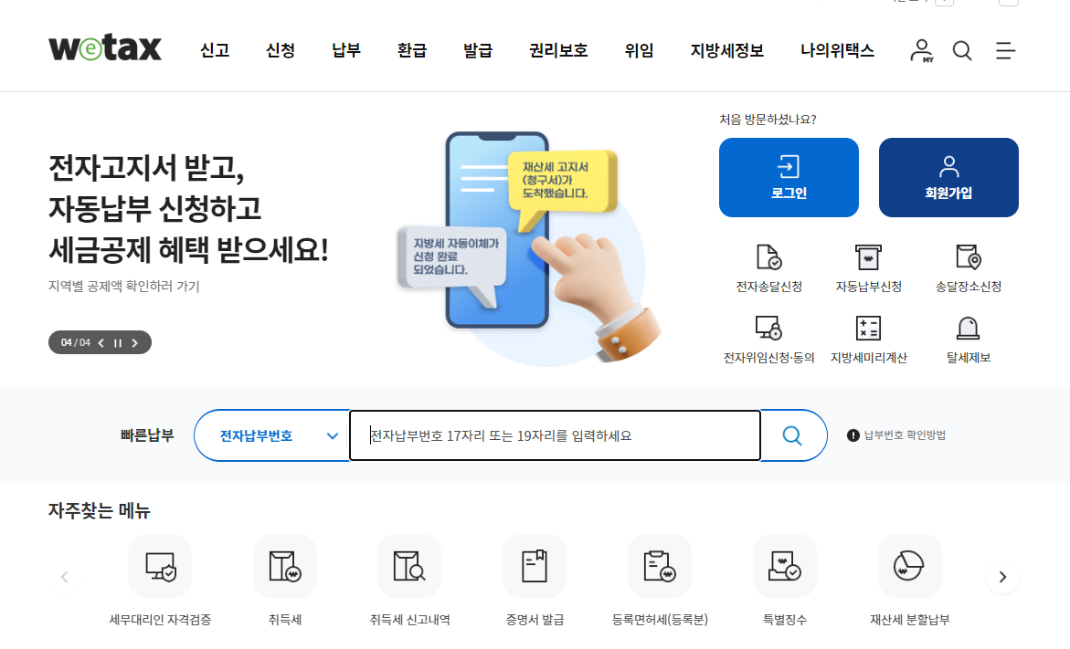 이를 위해 wetax 홈페이지에 방문하여 등록 면허세를 납부하는 절차를 진행합니다.
