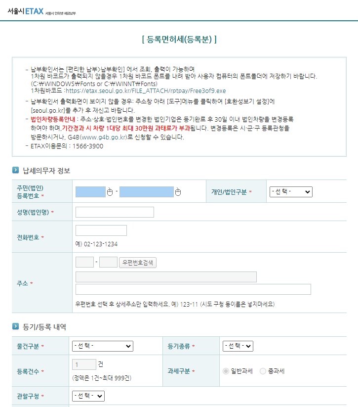 해제 신청을 위해서는 먼저 등록 면허세를 납부해야 합니다.