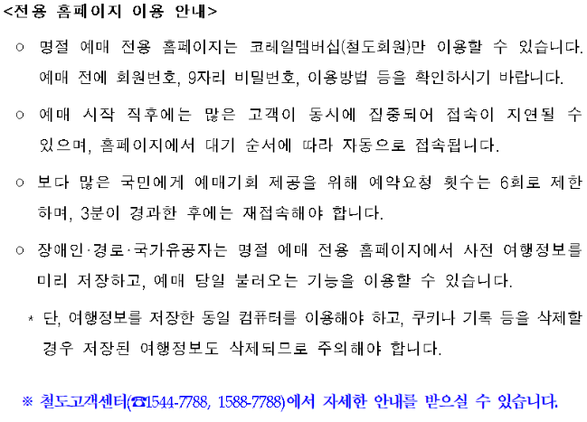 명절 승차권 예약은 서버가 폭주할 수 있으므로, 아래와 같은 꿀팁을 활용해 성공 확률을 높여보세요.