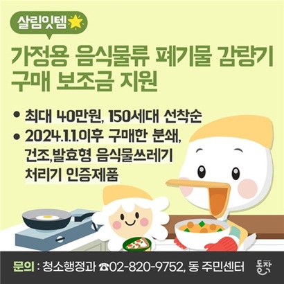 지원금 받고 음식물 처리기 사세요