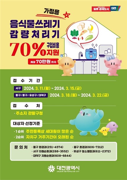 이 사업은 가정에서 음식물 처리기를 구입할 때, 구입비나 설치비를 일부 지원해주어 소비자들이 보다 쉽게 음식물 처리기를 구매할 수 있도록 돕는 제도입니다.