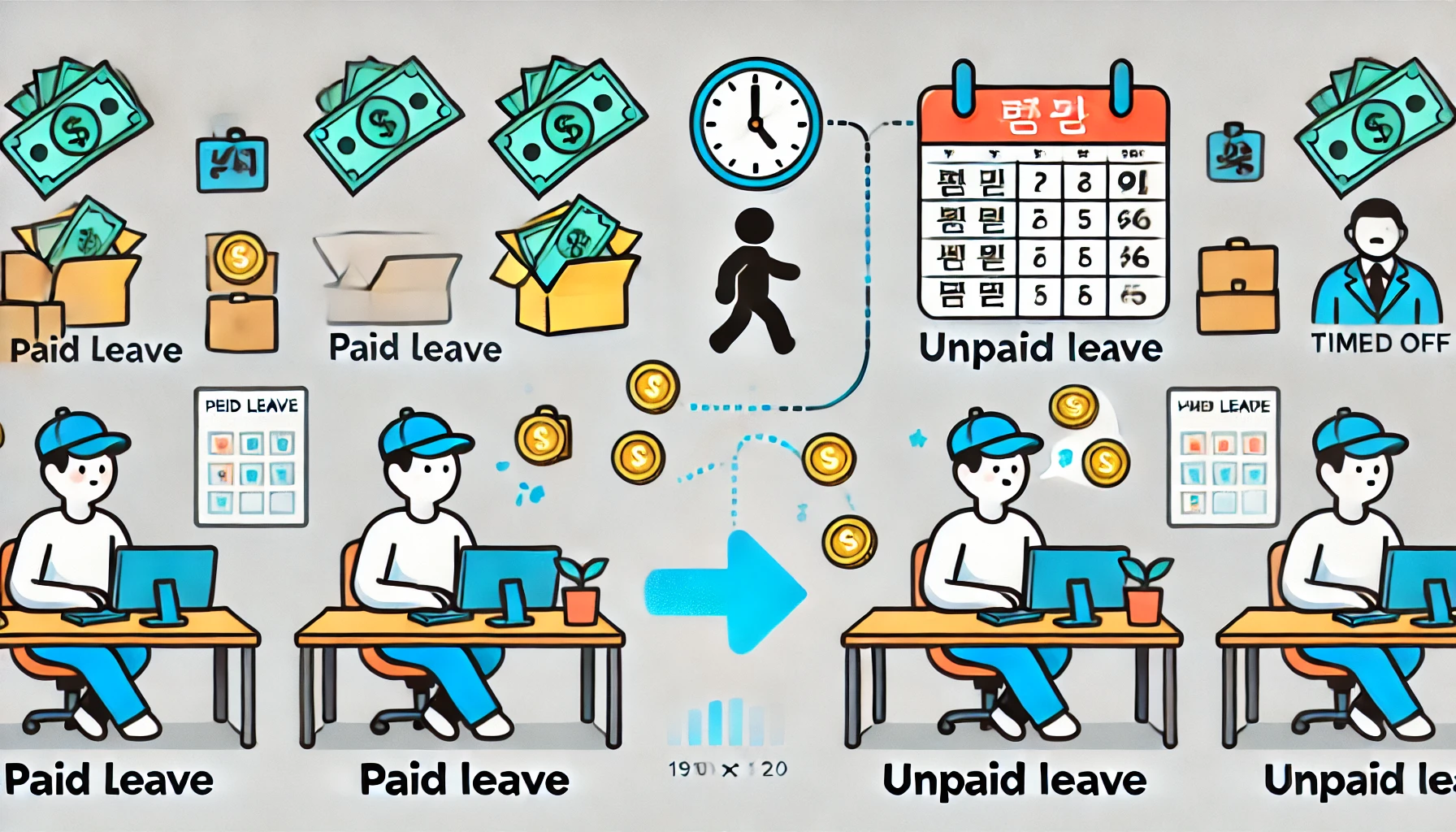 여기서 유급휴가와 무급휴가의 차이를 예시로 알아보겠습니다.