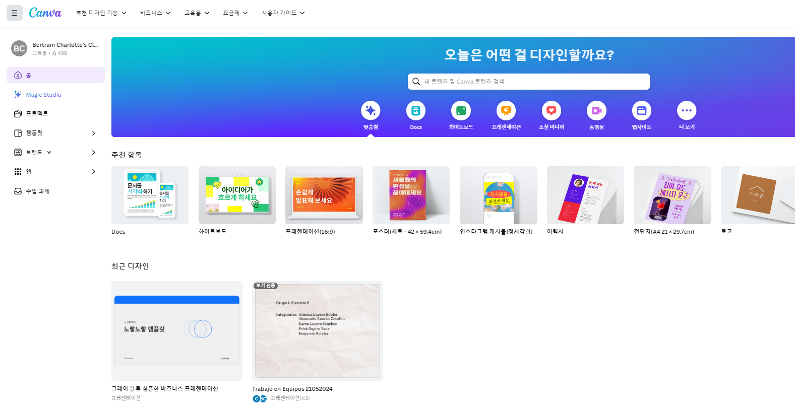 캔바 프로와 같은 경우 겜스고 내 공유 기능을 통해 팀원 계정을 별도로 관리할 수 있으며, 각자의 휴대기기에서 로그인 상태를 유지해 작업 히스토리와 프로젝트 분리가 가능합니다.